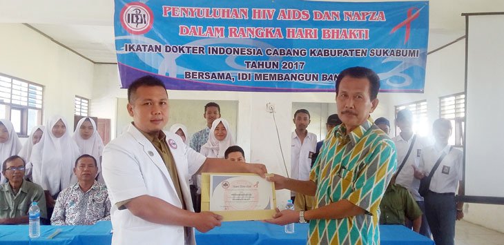 POJOKJABAR.com, SUKABUMI – Hari bhakti IDI (Ikatan Dokter Indonesia) cabang Kabupaten Sukabumi, Mei 2017 ini, dilakukan dengan sosialisasi tentang bahaya Inveksi Menular Seksual (IMS) dan HIV AIDS dikalangan pelajar SMK Negeri Bina Bangsa, Desa Buni Wangi, Kecamatan Surade, Kabupaten Sukabumi, Selasa (22/5/2017)