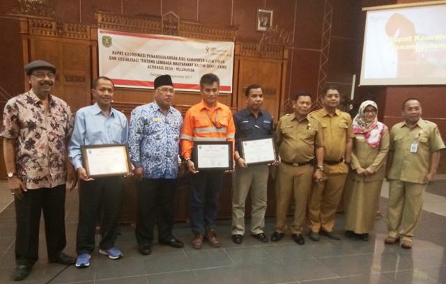 Sekertaris Daerah (Sekda) Kutai Timur (Kutim), Irawanayah, menyerahkan penghargaan kepada tiga perusahaan swasta yang bekerjasama dalam mecegah dan menaggulangi HIV/AIDS, di ruang Meranti Kantor Bupati Kutim, Senin, 18 September 2017.