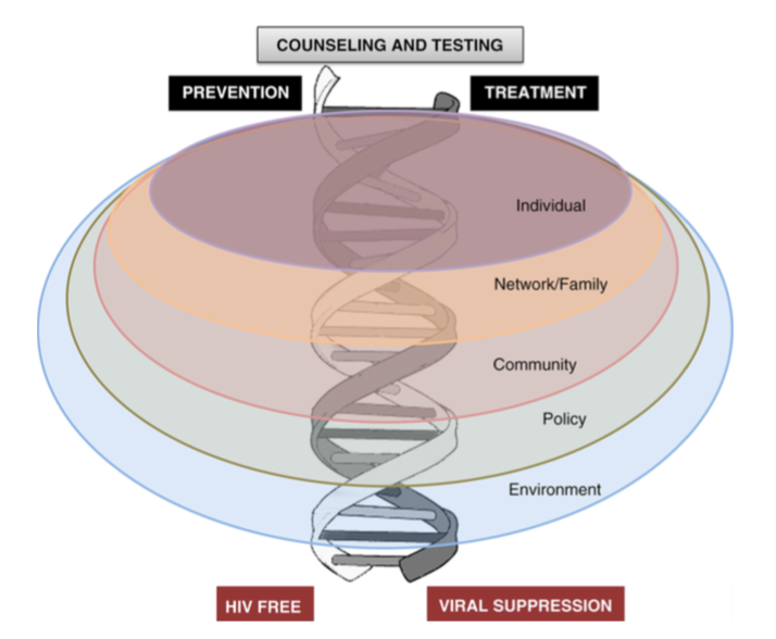 Namun layanan ramah remaja ini tidak bisa hanya dilakukan oleh layanan kesehatan saja. Meskipun pada penelitian yang dilakukan oleh Reif, LK, et al di Africa Selatan menunjukkan bahwa layanan ramah remaja ini meningkatkan retensi perawatan ART khususnya pada tahap penilaian kelayakan untuk masuk ART dan tahap inisiasi ART. Namun pada tahap kepatuhan setelah inisiasi masih menunjukkan kelemahan karena pada tahap ini banyak faktor di luar layanan kesehatan yang mempengaruhi seperti faktor lingkungan seperti dukungan dari keluarga, teman-teman dan sekeliling serta keadaan sosial dan ekonomi. Selain itu bila dilihat kembali dari cascade pada tahap awal yaitu tahap pencegahan yang juga meliputi konseling dan tes juga dibutuhkan dukungan lain selain layanan ramah remaja dari fasilitas layanan kesehatan. Pada tahap awal ini juga membutuhkan dukungan dari keluarga, teman-teman serta jaringan atau komunitas dan lebih besar lagi adanya kebijakan serta regulasi yang mendukung, dimana hal ini juga sejalan dengan lima langkah yang disebutkan sebelumnya. Model intervensi yang menggabungkan seluruh elemen tersebut secara bersama dalam mengembangkan layanan ramah remaja ini digambarkan oleh Bekker L-G, et al dalam sebuah kerangka penyediaan layanan remaja di bawah ini yang diadaptasi dari DiClemente, et al. (2005)[2].