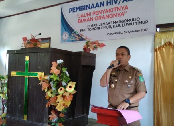 Gereja Protestan Indonesia Luwu (GPIL) wilayah Kabupaten Luwu Timur, menggandeng Komisi Penanggulangan AIDS (KPA) Luwu Timur melakukakan sosialisasi dan pembinaan HIV/AIDS, GPIL Jemaat Margomulyo Kecamatan Tomoni Timur, Senin (30/10/2017).